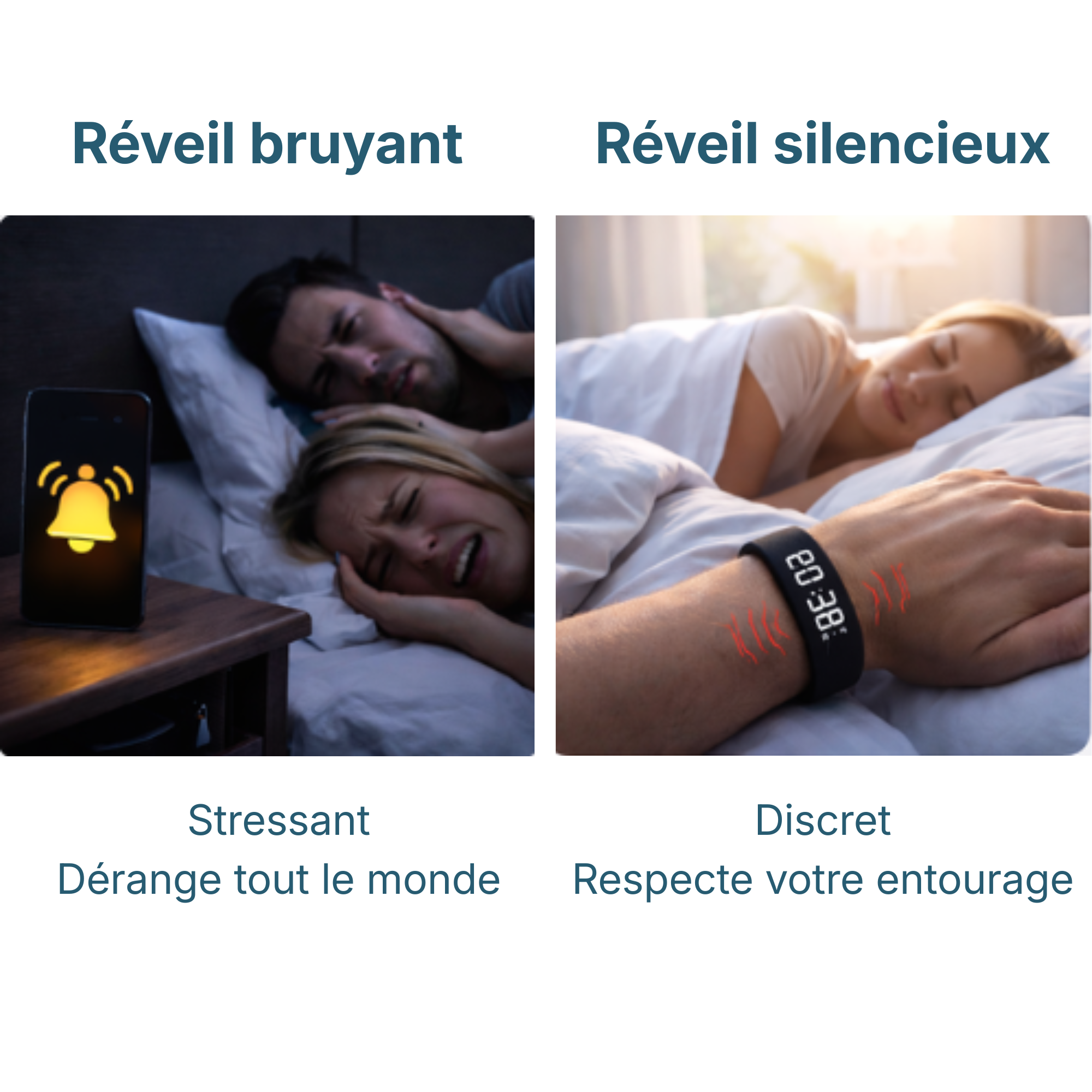 SilentWake vous réveille en douceur, par vibrations discrètes, directement au poignet.